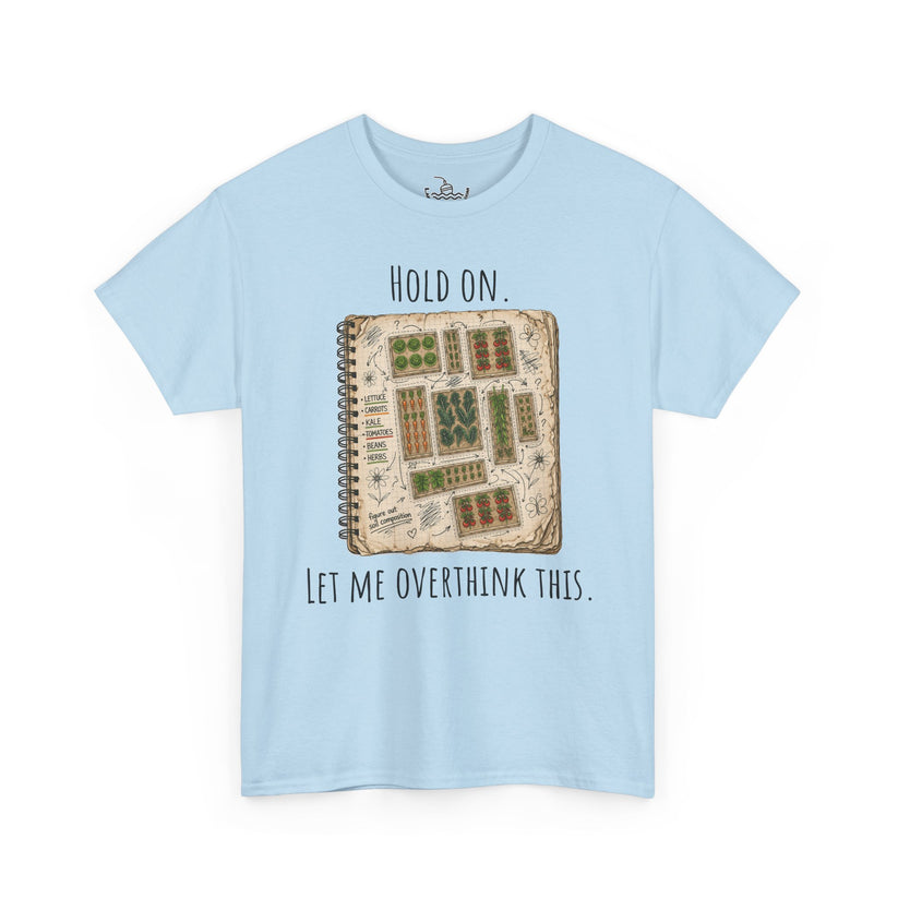 Soft, thoughtful, with a pinch of anxiety — this classic cotton tee carries a tiny world of detail across the chest. The illustrated notebook layout and the line “Hold on. Let me overthink this.” speak to quiet moments of planning, sketching, and second-guessing. Wear it when you’re mapping out your next idea, curled up with a warm drink, or heading out to a casual meet-up where conversation meanders into small obsessions. The crew neckline and relaxed cut keep the mood easy; the printed inner label and sleeve detail are subtle nods to craft and care. It feels like a wearable sketchbook for people who notice the little patterns and prefer thinking things through slowly and with a smile. ©Lake Lodge Media LLC. All rights reserved.